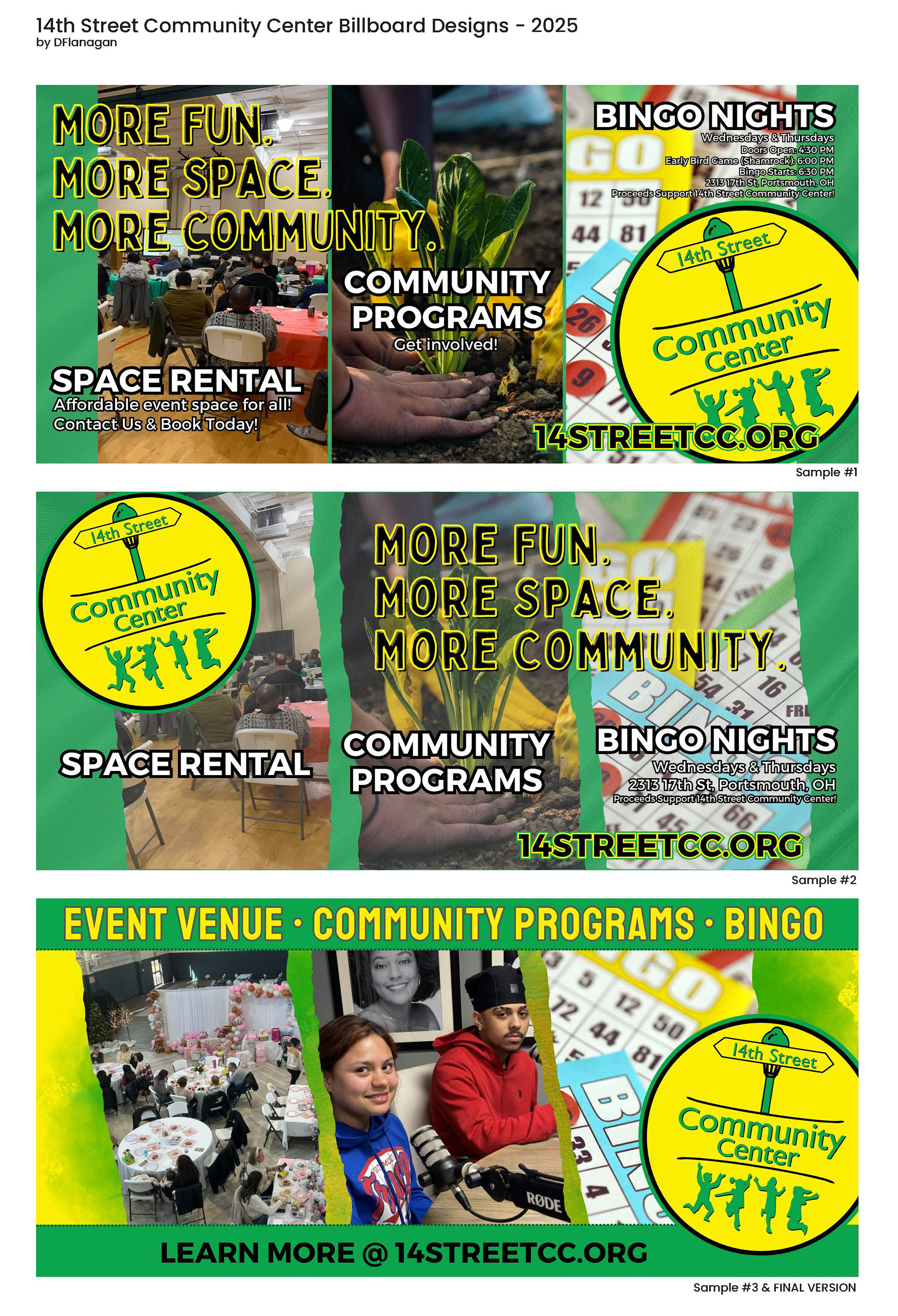 Created this billboard for the 14th Street Community Center (2025) to help them promote their community programs available, bingo and their new event venue.